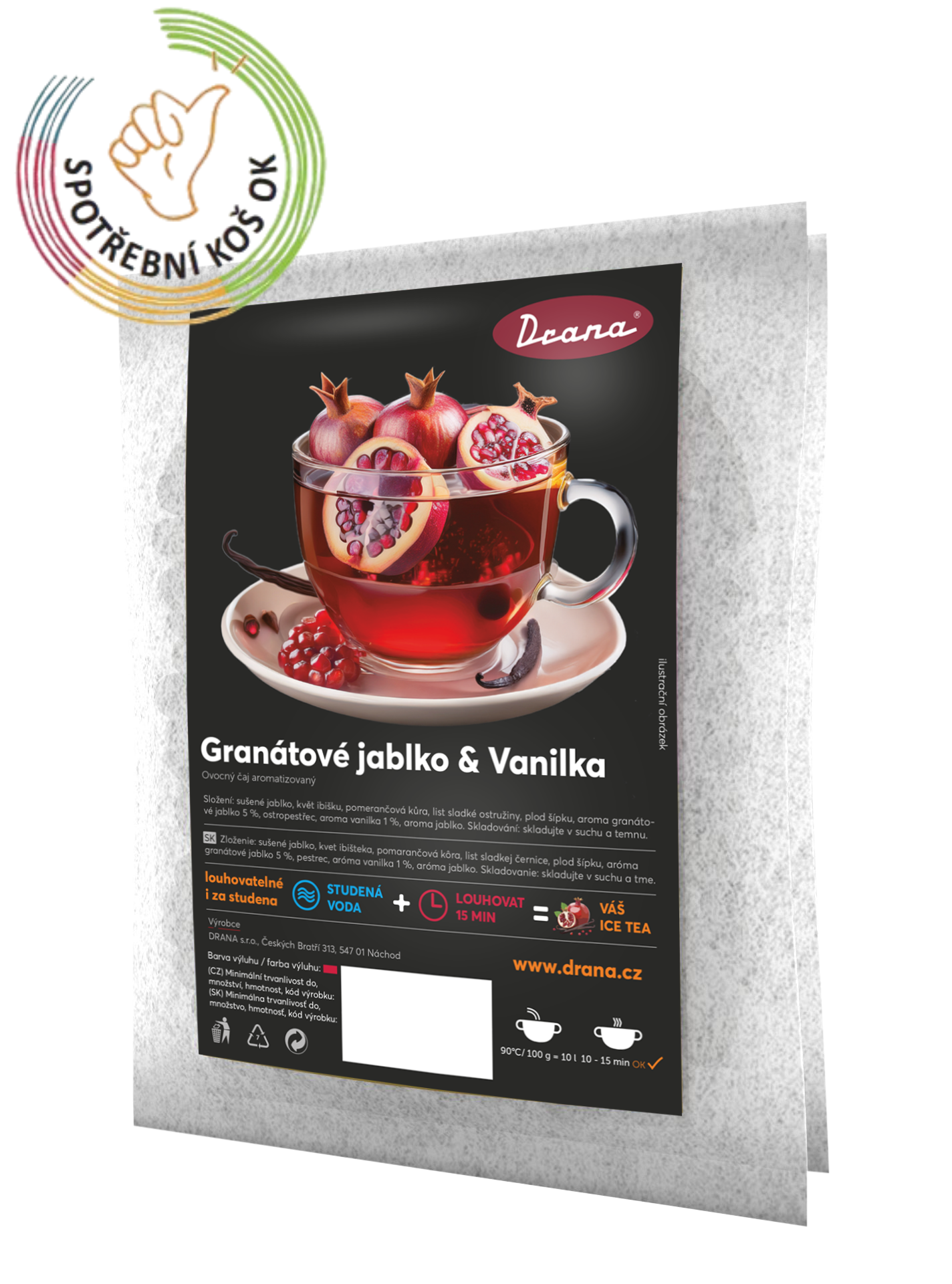Naše čaje obsahují velké kousky skutečného ovoce, jsou bez alergenů a pesticidů a baleny v netkané textilii ve 100g sáčcích, ideálních pro přípravu 10 l nápoje.